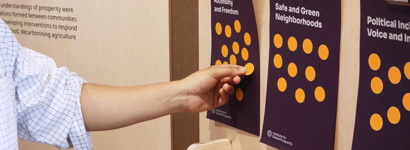 People Powered Prosperity explored the multidimensional nature of prosperity through a citizen science approach, highlighting how individuals from diverse communities collaborated to co-design innovative pathways toward improved livelihoods, secure environments, democratic participation, healthy cities, and climate-resilient futures. It showcased its new approach of working directly with trained citizens to rethink prosperity with and for communities. This method brought forward fresh forms of knowledge creation, innovative solutions, and practical tools for businesses and policymakers, enabling citizens to power the transformations needed to tackle today’s most pressing challenges. Visitors met the citizen scientists who conducted research and learned from IGP staff about the innovative tools and metrics developed to support local governments and businesses in delivering social impact.